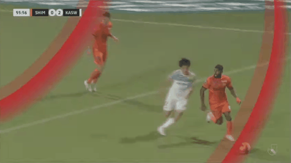 55’中川伸辉禁区外远射,清水心跳门将将球扑出底线