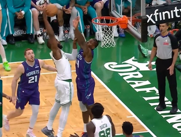 开云应用-终于泄泄愤!杰伦·布朗突破蓄力起飞 单臂暴力隔扣迪亚巴特!