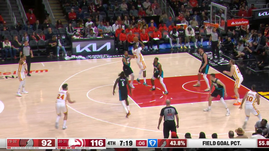 ——第三球利用开拓者的防守失误直接篮下强起,这一次小杨成了背景板