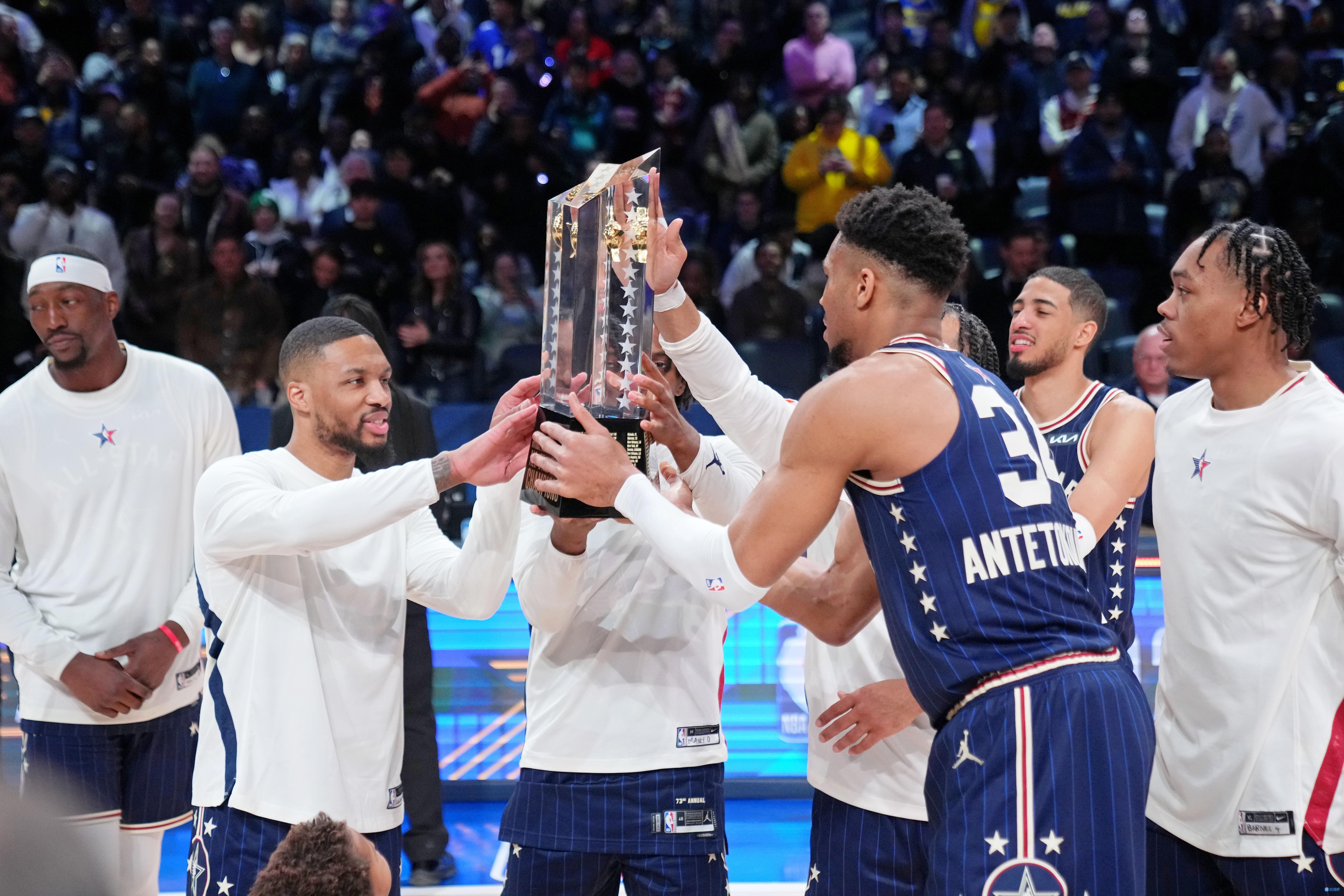 字母哥队:库里、恩比德、乔治、肯巴-沃克、米德尔顿、约基奇、本-西蒙斯、格里芬、拉塞尔、武切维奇、洛瑞、诺维茨基